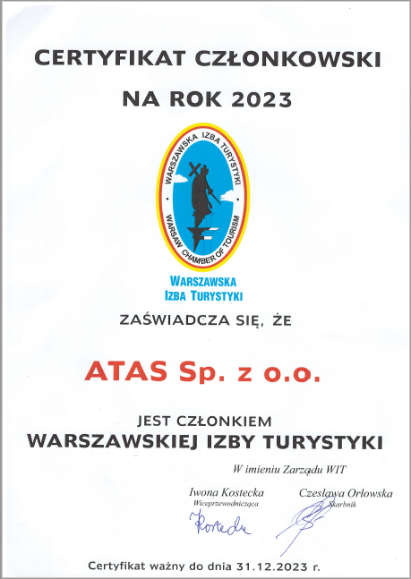 - Zaświadczenie o wpisie do Rejestru Organizatorów Turystyki ZOBACZ